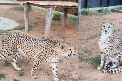 NewzVille Desk Indian-born female cheetah Gamini - KGP12, second cub of Gamini’s first litter, aged 25 months - gave birth…