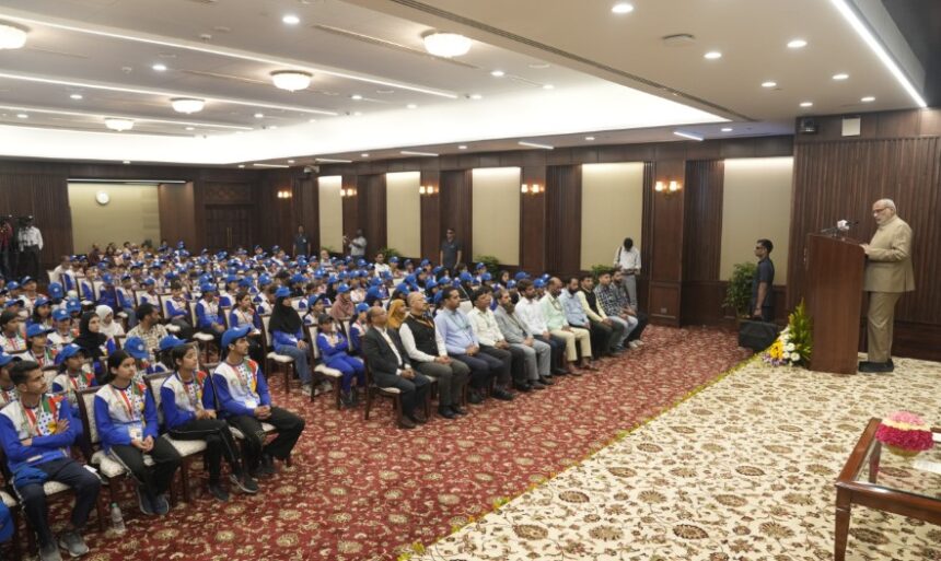 C P Radhakrishnan interacts with the 250-member youth delegation from Jammu and Kashmir