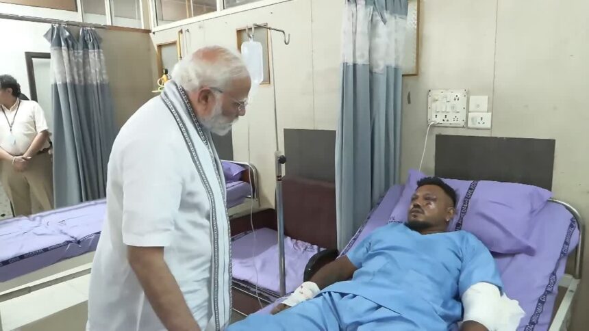 The Prime Minister of India, Narendra Modi today met the sole survivor of the Ahmedabad plane crash and inquired about his well-being. PM Modi also met other injured individuals at Ahmedabad Civil Hospital and asked about their condition. Earlier, Prime Minister Narendra Modi took stock of the crash site in Ahmedabad. Gujarat Chief Minister, Union Civil Aviation Minister, and senior officials were also present with the Prime Minister.