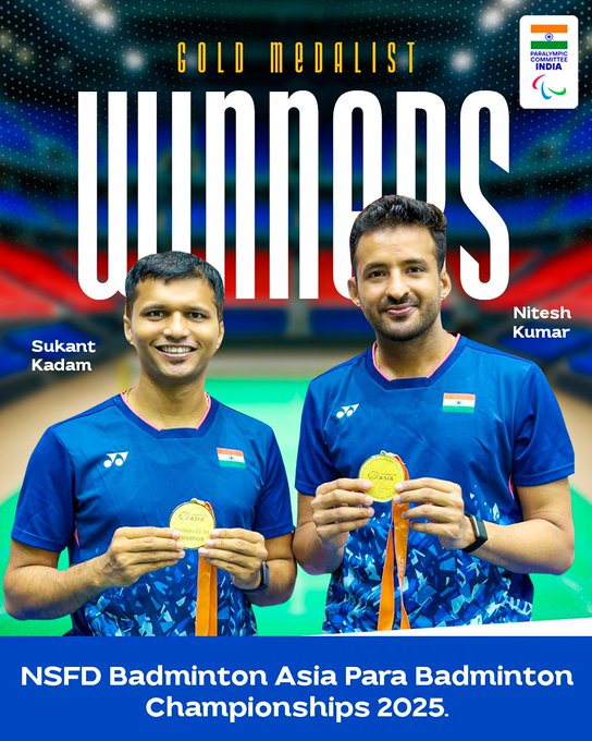 India stamped its authority in the mixed doubles SL3-SU5 category, sweeping all three podium spots. Kumar and Murugesan grabbed gold, Ruthick Raghupathi and Manasi Joshi claimed silver, while Chirag Baretha and Mandeep Kaur settled for bronze.