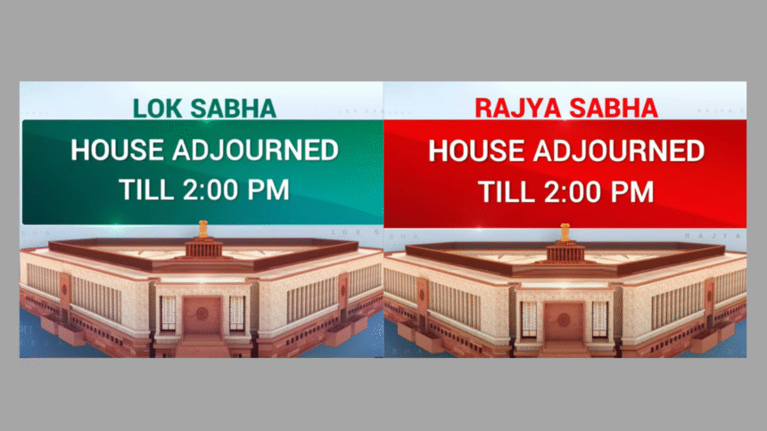 Both Houses of Parliament have been adjourned till 2:00 PM on Wednesday amid ruckus from the opposition over the Special Intensive Revision exercise conducted in Bihar, among other issues.