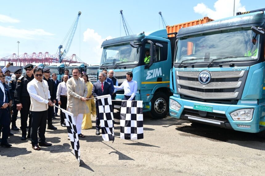 The Union Minister of Ports, Shipping & Waterways (MoPSW), Sarbananda Sonowal flagged off India’s first fleet of electric heavy trucks with swappable batteries at the Nhava Sheva Distribution Terminal in Jawaharlal Nehru Port Authority (JNPA) today.