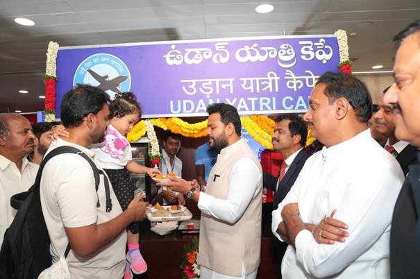 The Udan Yatri Cafe was inaugurated at Vijayawada International Airport by Minister of Civil Aviation Rammohan Naidu Kinjarapau on Monday in the presence of Kesineni Sivanath, Member of Parliament, Vijayawada; Dr Sharad Kumar, Member (Operations), AAI; Dr H Srinivas, Member (HR), AAI and senior officials from AAI.