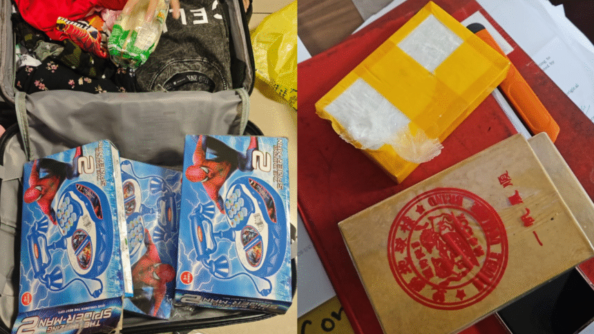 The examination led to the recovery of 22 brick-shaped packets of a white powdery substance concealed inside toy packages. Testing with the NDPS field kit confirmed the substance to be cocaine.