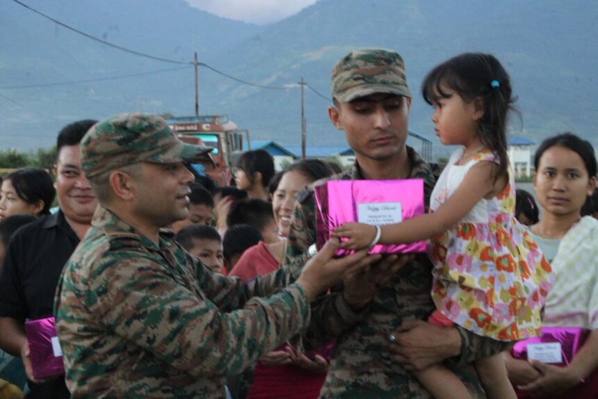 The Indian Army celebrated Diwali with the residents of Mandop Yumpham Relief Camp, Khurkhul, and Dwarika villages in Imphal West district of Manipur. The event aimed to spread festive cheer, strengthen unity, and share joyous moments with displaced families and children.
