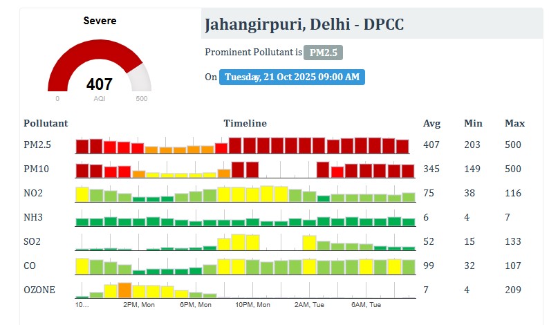 The national capital, Delhi’s air quality is in the very poor category. According to Central Pollution Control Board, the Air Quality Index (AQI) was recorded at Jahangirpuri is 407, which is hazardous/severe.