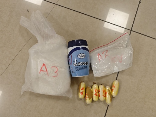 DRI Officers also recovered two capsules that had been ingested by the passenger. Testing of the recovered substances, using NDPS field test kit, showed positive results for Cocaine.