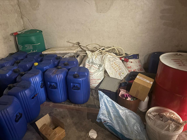 Police immediately shared the information with NCB, Jodhpur whereupon the officers immediately reached the site and found tell-tale signs of a clandestine lab. Hundreds of kgs of chemicals were found which was sufficient to manufacture about 100 kgs of Mephedrone.