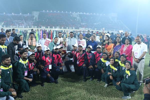 The 4th National Eklavya Model Residential Schools (EMRS) Sports Meet 2025 concluded today with grandeur and patriotic fervour at the Birsa Munda Athletics Stadium, Rourkela, coinciding with the nationwide celebration of Bhagwan Birsa Munda Janjatiya Gaurav Diwas. The event paid tribute to the valour and sacrifice of Bhagwan Birsa Munda and celebrated the rich legacy of India’s tribal freedom movement.