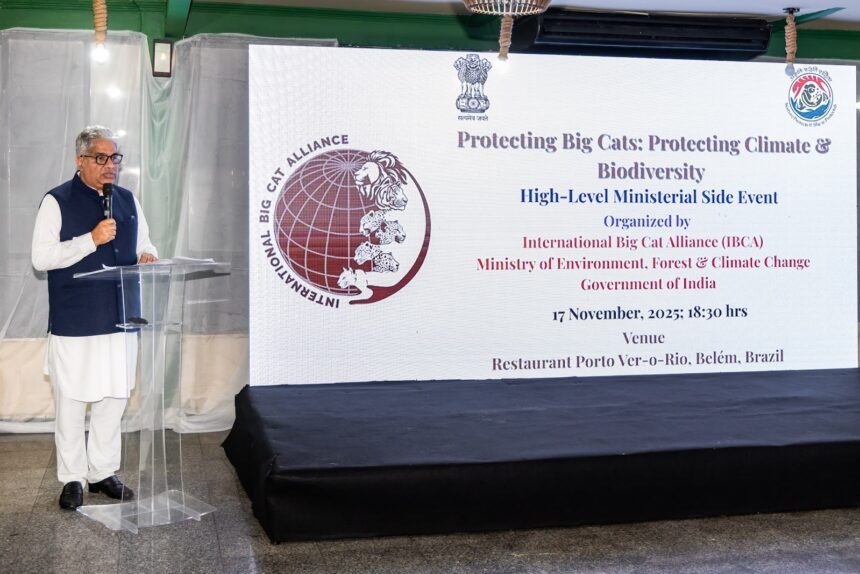Minister for Environment, Forest and Climate Change, Bhupender Yadav, addressed the High-Level Ministerial Segment on the International Big Cat Alliance (IBCA) at UNFCCC CoP30 in Belém, Brazil, on 17 November 2025. The event was graced by the Minister of Agriculture and Livestock, Government of Nepal, Dr. Madan Prasad Pariyar.