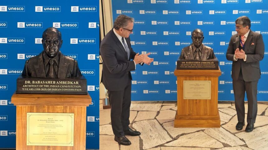 Prime Minister Narendra Modi expressed pride at the unveiling of the statue of Dr Babasaheb Ambedkar at the UNESCO Headquarters in Paris on Constitution Day.