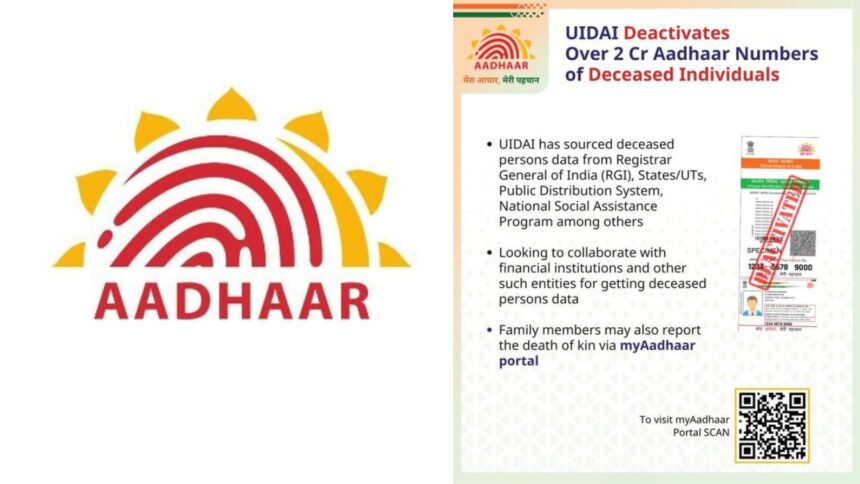 The Unique Identification Authority of India (UIDAI) has deactivated over two crore Aadhaar numbers of deceased individuals as part of a nationwide clean-up effort to maintain the continued accuracy of the Aadhaar database.