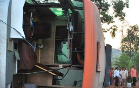 The inter-province bus was travelling from Jakarta to Yogyakarta when it overturned while entering a curved exit ramp near the city of Semarang, police said.