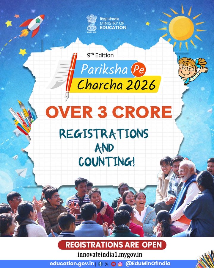 Registrations for Pariksha Pe Charcha (PPC) by students, parents, and teachers as of 30 December, 2025, have crossed a historic milestone, with over 3 crore. Online registrations for Pariksha Pe Charcha 2026 opened on December 1, 2025, on the MyGov portal.