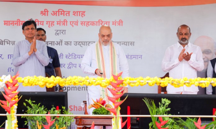 Home Minister Amit Shah today inaugurated nine projects and laid the foundation stone of two projects worth 373 crore rupees at a function held at Sri Vijaya Puram in Andaman and Nicobar. This includes the inauguration of an integrated command and control centre costing 229 crore rupees.