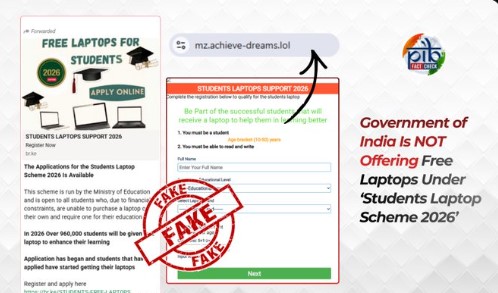 The government has debunked a message circulating on social media platforms claiming that the government is offering free laptops under the Students Laptop Scheme 2026.