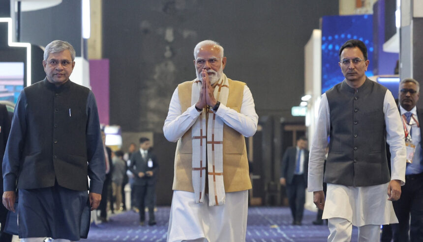 Prime Minister Narendra Modi today inaugurated the India AI Impact Expo 2026 at Bharat Mandapam. Minister of Electronics and Information Technology, Ashwini Vaishnaw and Minister of State for Ministry of Electronics and Information Technology, Jitin Prasada were also present on the occasion