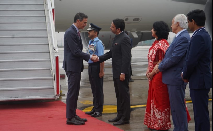 President of Spain, Pedro Sánchez Pérez-Castejón has arrived at the Indira Gandhi International Airport for the India-AI Impact Summit. He was warmly received by Minister of State for Skills Development and Entrepreneurship Jayant Chaudhury.