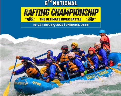 The 6th National Rafting Championship titled “The Ultimate River Battle” will begin today at Shibnote in Doda district of Jammu and Kashmir. The championship aims to showcase top rafting talent from across the country while promoting adventure tourism in the region. Set against the scenic backdrop of the mighty Chenab River, the event is expected to attract professional rafting teams, adventure enthusiasts, and tourists.