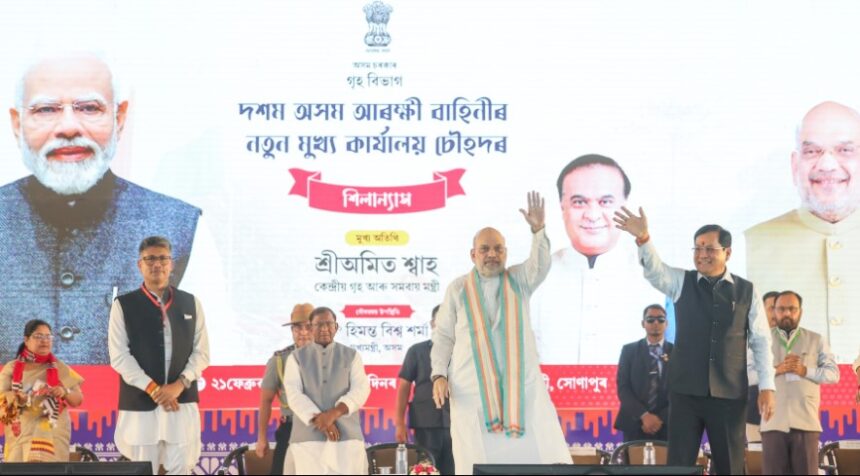 Union Home Minister Amit Shah today laid the foundation stone for a new campus of the 10th Assam Police Battalion at Kachutoli in the Kamrup Metro district. The cost of this project is over 260 crore rupees. Governor Laxman Prasad Acharya, Chief Minister Himanta Biswa Sarma and Union Minister for Ports, Shipping and Waterways Sarbananda Sonowal were also present on the occasion.
