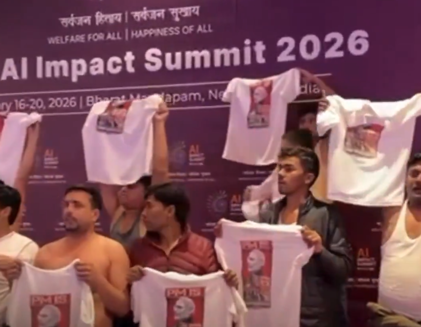 Last Friday, a group of Indian Youth Congress (IYC) workers staged a dramatic shirtless protest at an exhibition hall during the AI Impact Summit at the Bharat Mandapam, walking around holding T-shirts with slogans against the government and the India-US trade deal printed on them, before being whisked away by security personnel present at the venue.