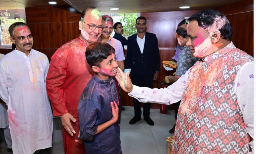 The Chief Minister of Odisha, Mohan Charan Majhi celebrated Holi yesterday with cabinet members and senior civil servants at his official residence. Speaker Surma Padhi reached the Chief Minister’s residence and conveyed her Holi greetings.