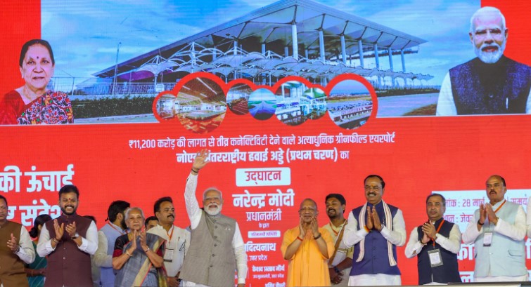 Prime Minister Narendra Modi on today inaugurated the first phase of the Noida International Airport, developed at a cost of ₹11,200 crore at Jewar in Uttar Pradesh. Anandiben Patel, Governor of UP, Yogi Adityanath, Chief Minister of Uttar Pradesh, K Rammohan Naidu, Union Aviation Minister and other dignitaries were also present on the occasion.