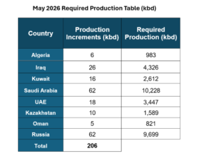 Key members of the OPEC+ alliance namely Saudi Arabia, Russia, Iraq, UAE, Kuwait, Kazakhstan, Algeria, and Oman met virtually on 5 April, 2026, to discuss production quotas for the month of May, as the ongoing U.S.-Iran conflict continues to unsettle global oil markets.