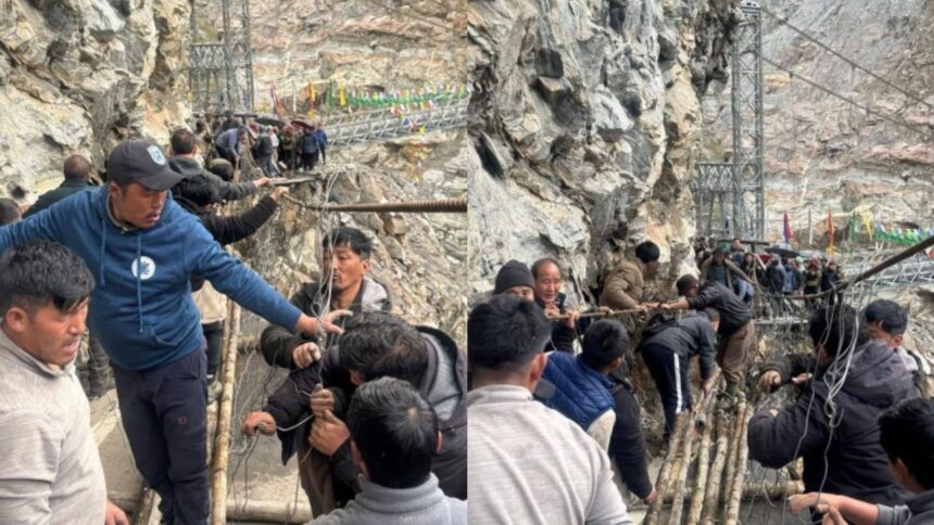 A temporary footbridge has been swiftly constructed at Tarum Chu yesterday, restoring critical connectivity after a road breach disrupted access to Lachen.