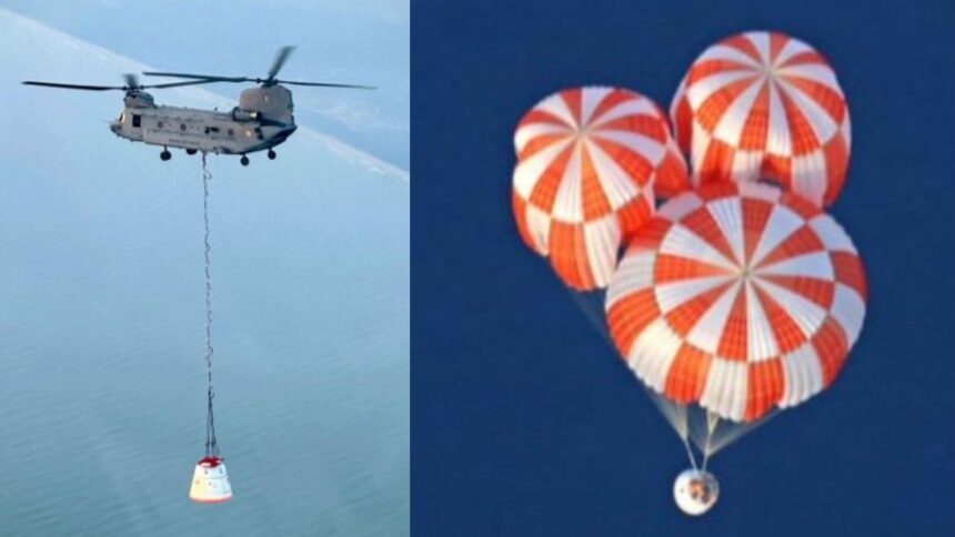 After the module’s release, a parachute system, comprising 10 parachutes, was deployed, helping the capsule decelerate to a safe splashdown speed.